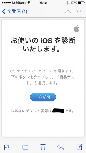 iPhoneに届いたメールを開いて「iOS診断」をポチっ!