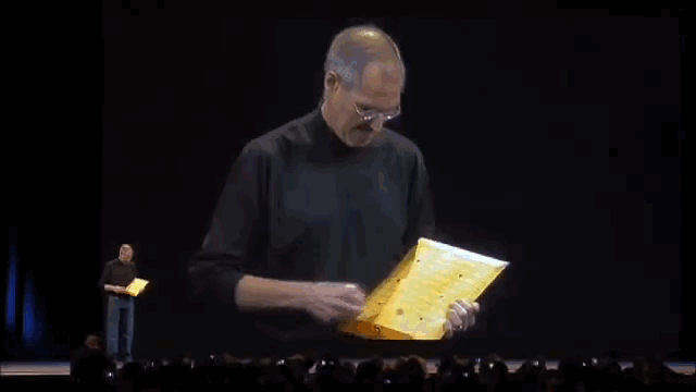 ジョブズが書類用の茶封筒から MacBook Airを取り出すという印象的なパフォーマンスで初お披露目されました。