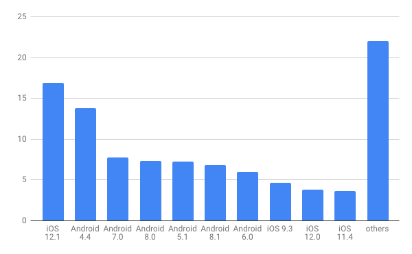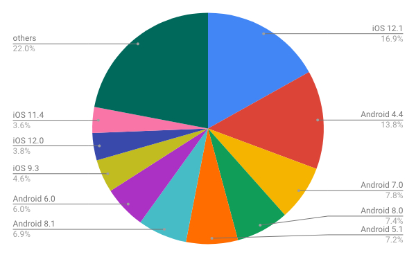 で、面白いのが、OSバージョン別シェアでみると「iOS 12.1」が「16.87%」でトップなんです!!!!!