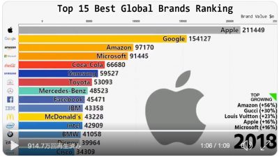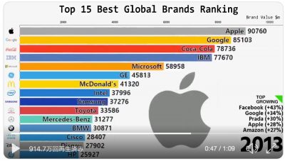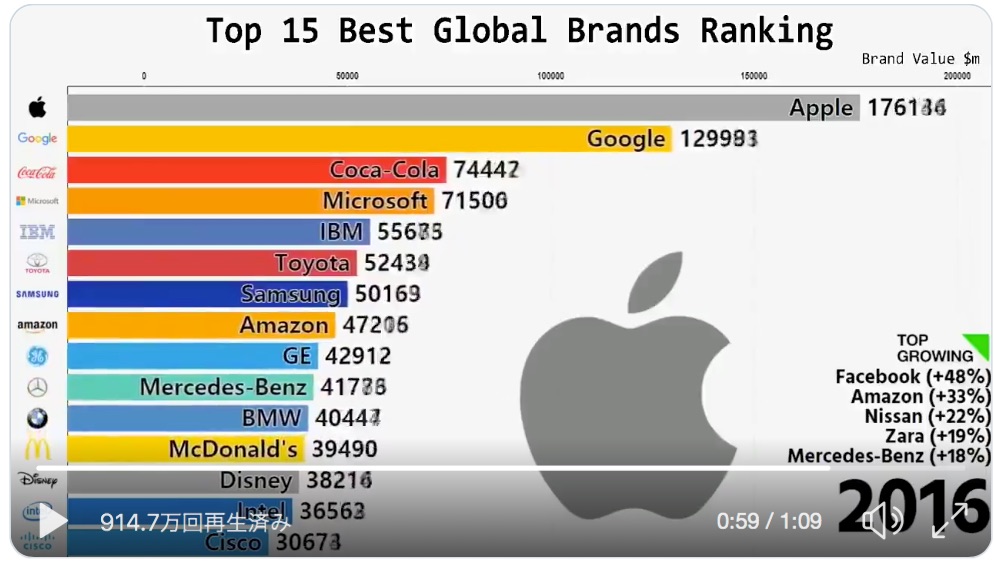 Apple常連の「最も価値あるブランド」ランキングの変遷動画