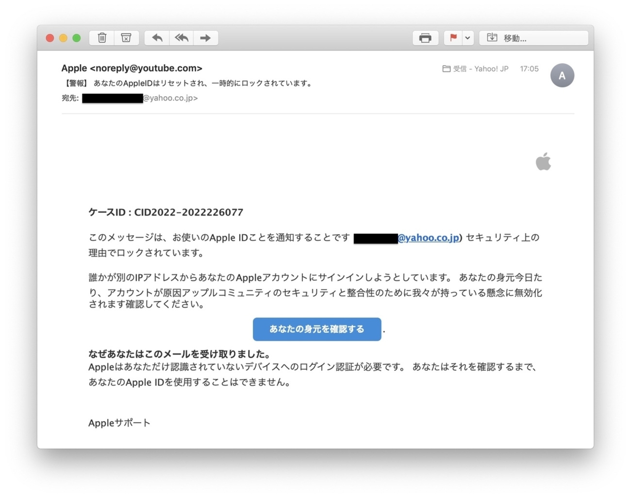 要注意:Appleを騙る偽メールの事例(42) - りんごが好きなのでぃす