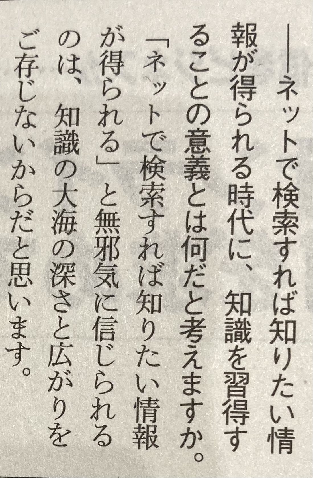 ネットで検索すれば知りたい情報が得られる時代に、知識を習得することの意義とはなんだと考えますか。