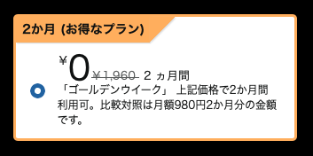 同サービスの通常料金は980円/月で、2ヶ月分だと1,960円になるところ、キャンペーン適用で2ヶ月間が完全に無料で利用出来ちゃいます。