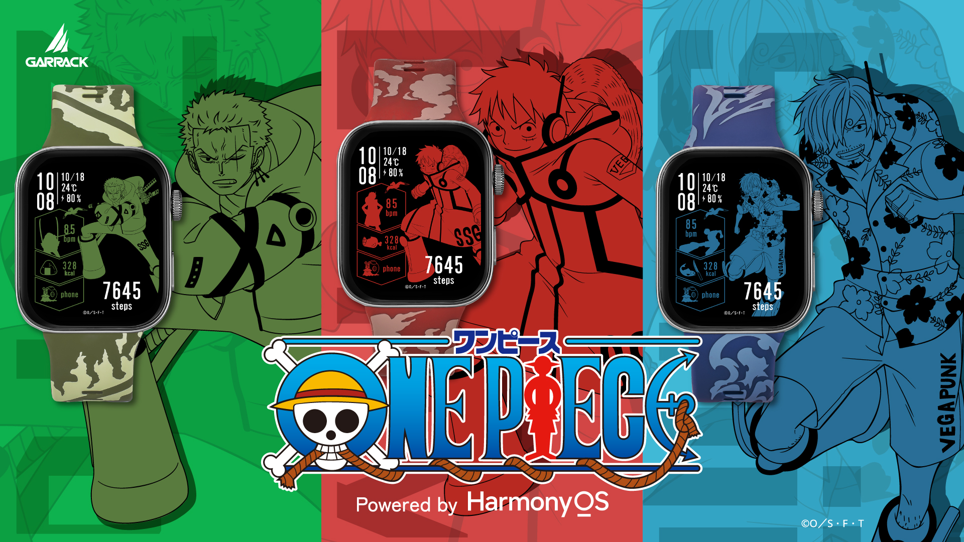 キャラクターコラボ専門ブランド「GARRACK(ギャラック)」から、『ONE PIECE』のルフィ、ゾロ、サンジをモチーフにした限定スマートウォッチが登場します。2025年8月20日に予約受付が開始され、8月27日より一般販売が始まります。価格は各29,700円(税込)です。
