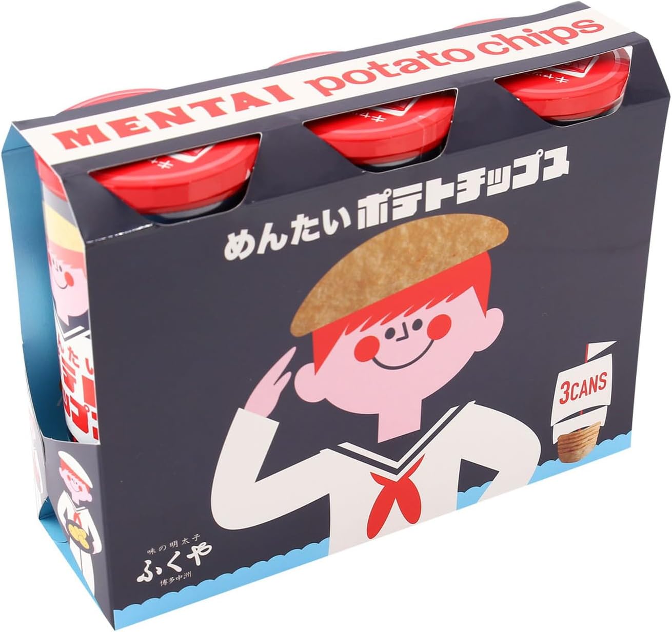 パッケージデザインにも工夫が光ります。明太子という“海の幸”をテーマに、水兵さんをモチーフにしたイラストをあしらったパッケージと3本セットのスリーブは、見た目にも可愛らしく、お土産やカジュアルギフトにもぴったりな仕上がりです。