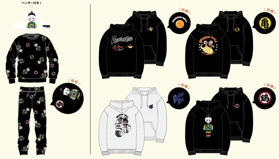 他、「プルパーカー」は全4種3,299円(税込)で、左胸にはドラゴンボールや亀仙流マークの刺繡が施され、背面には対応キャラクターが描かれています。今回のコラボはキャラ・ギミック・価格ともにバランスが良く、ファンから「上下そろえて部屋着にしたい」「刺繡パーカーなら普段使いにも」など期待が高まっています。