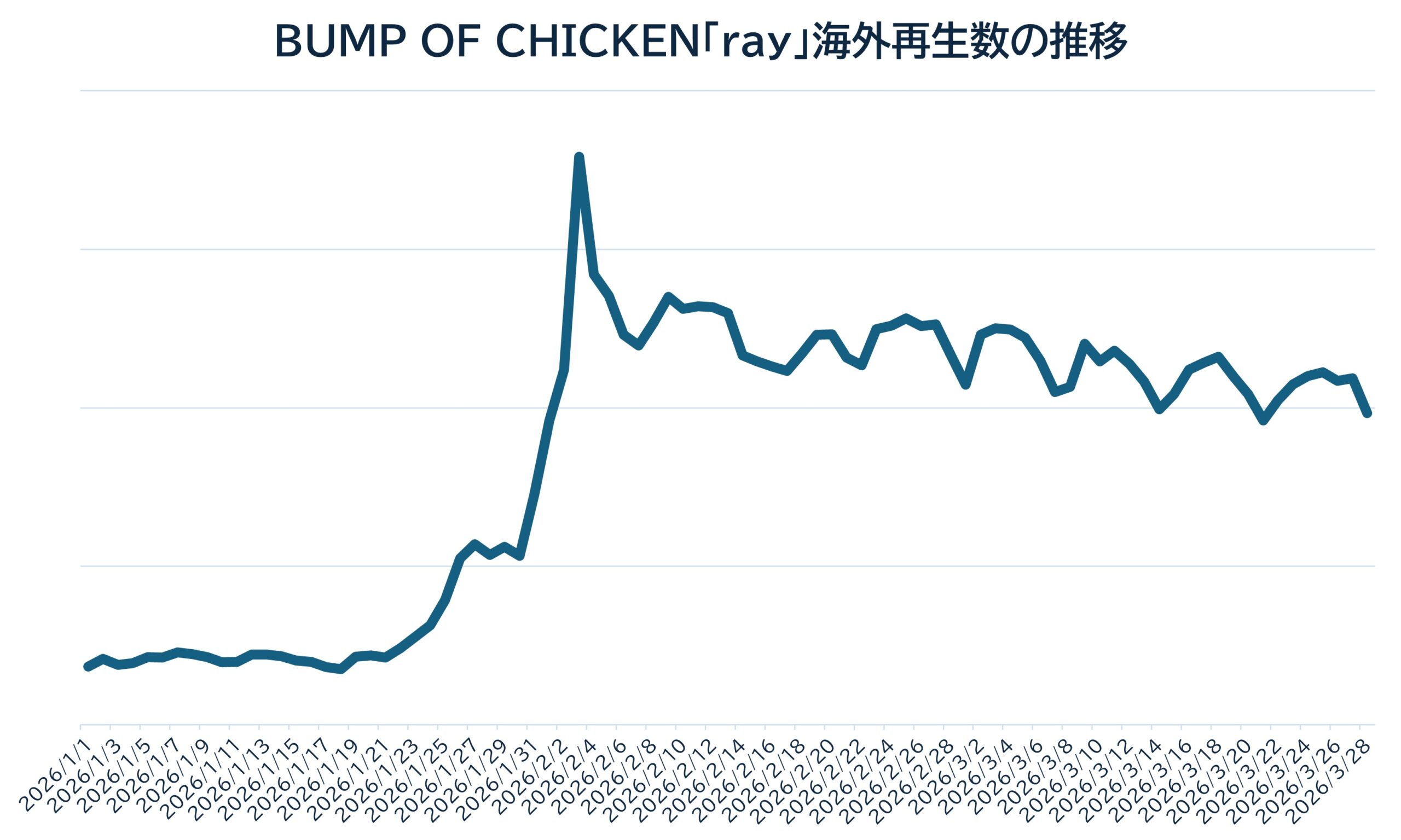 ロックバンドBUMP OF CHICKENの代表曲「ray」が、Netflixアニメーション映画『超かぐや姫!』の公開をきっかけに海外で再び注目を集めている。報道によると、同楽曲の海外ストリーミング再生数は公開後に約4倍へと急増。ボーカルの藤原基央が紡ぐ普遍的なメッセージが、国境を越えて響いた形だ。
