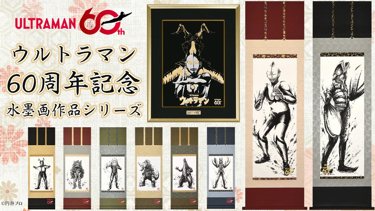 ウルトラマンシリーズ放送開始60周年を記念し、日本の伝統工芸と特撮文化が高度に融合した珠玉のアート作品が発表されました。株式会社版三が運営する「版三 浮世絵工房」にて、2026年4月21日より販売が開始された本プロジェクトでは、熟練の日本画家が描き下ろした水墨画を用いた掛軸や、豪華な箔押し作品がラインナップされています。