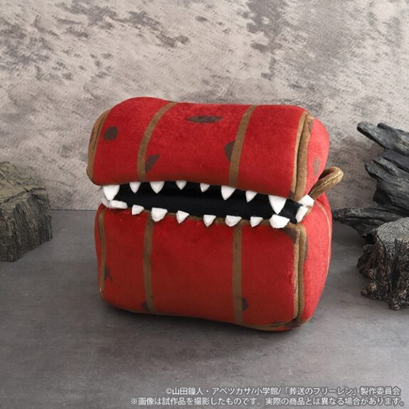 「葬送のフリーレン」において、千年以上生きる大魔法使いフリーレンが、宝箱に化けた魔物「ミミック」に頭から食べられてしまう姿は、作品屈指の人気ネタとなっています。魔導書に対する飽くなき探究心ゆえに、99パーセントの確率でミミックだと分かっていても「本物の魔導書かもしれない」と挑んでしまう彼女のシュールな姿が、この度ファン待望のミニサイズぬいぐるみとして製品化されました。