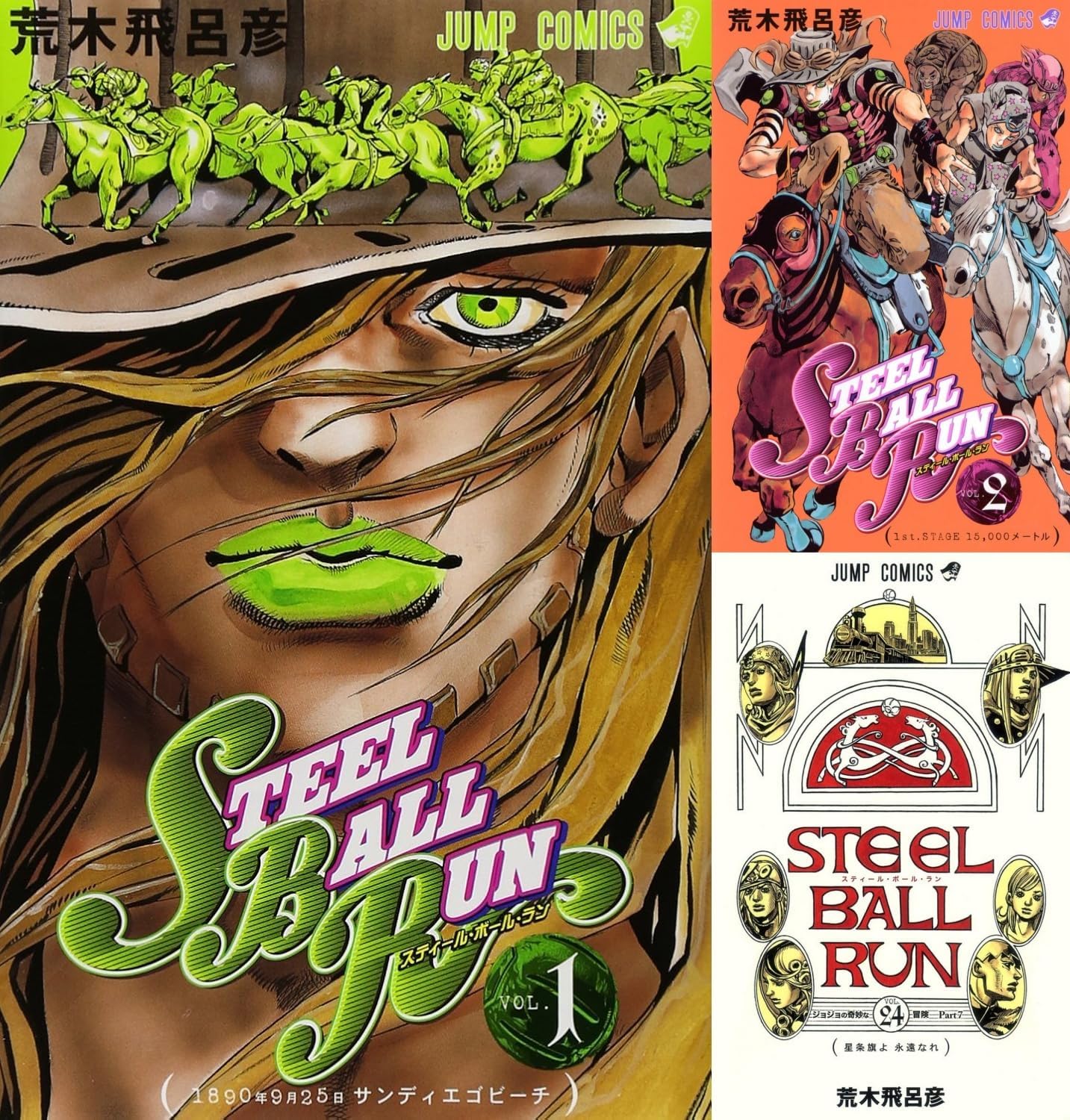 - 物語の舞台とスケール:第7部『スティール・ボール・ラン』は、1890年のアメリカ大陸を舞台に、北米大陸横断レースを描いた物語です。従来のシリーズとは異なるパラレルワールドのような世界観で展開され、シリーズの中でも特に重厚な人間ドラマと圧倒的な画力で最高傑作と評されることも多い作品です。
