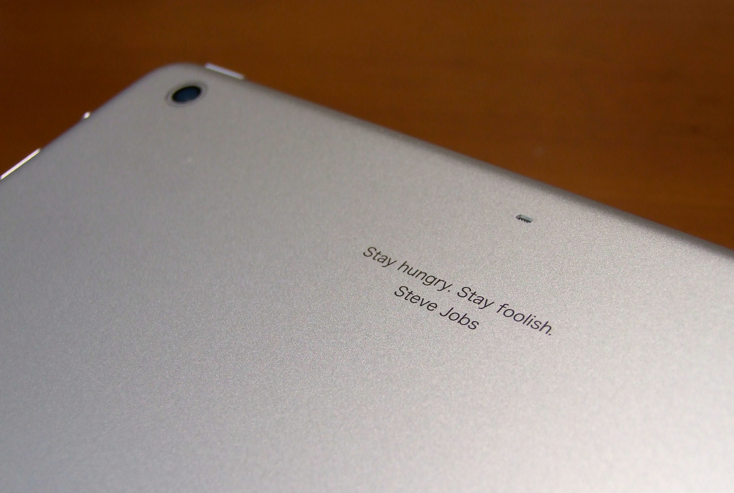 そして、先ほどからチラチラ映り込んでいるのでバレバレですけど、無料の刻印サービスで入れてもらったジョブズの名言・・・