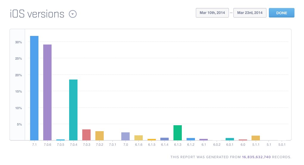 しかも3月10日にリリースされた iOS 7.1も、すでにiOSユーザーの31%と大部分を占めている!!