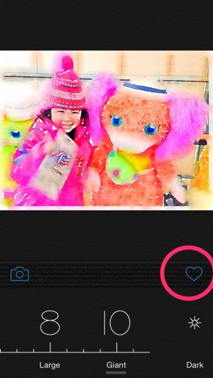加工した画像は、ハートマークをタップすることで・・・