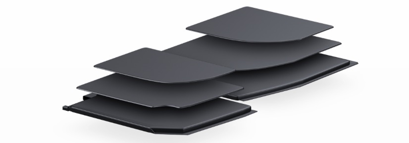 従来の長方形のバッテリーから、筐体特有の輪郭にフィットするよう特別に形作られています。
