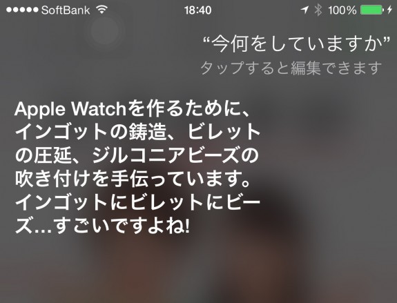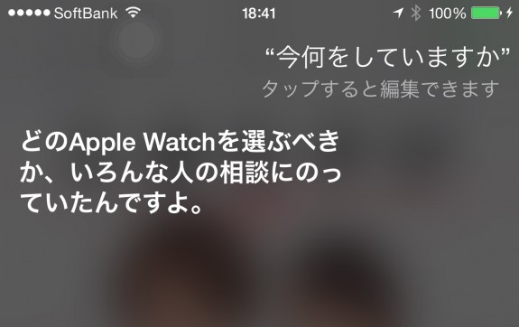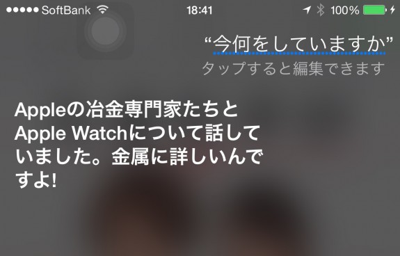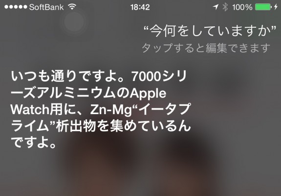 日本語Siriさんが Apple Watchに関する興味深い回答を多彩なパターンで返すようになっていると、ASCII.jpに掲載されていたので早速試してみた。