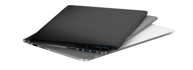 Line Dockは、12インチMacBook、13インチ、15インチMacBook Pro用の3種類のサイズと、シルバー、スペースグレイ、マットブラックの3種類のカラーから選べます。