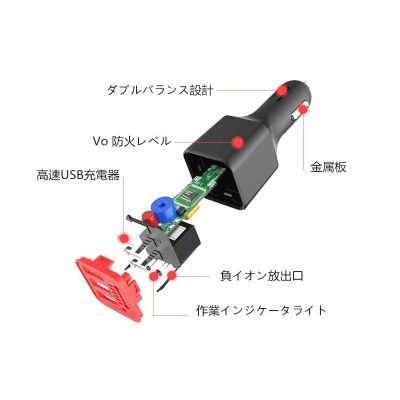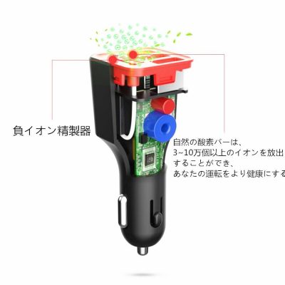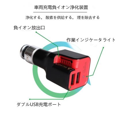 MERRILL 車載2ポートUSB充電と空気浄化功能付け、マイナスイオン発生器、車内空気清浄、消臭、抗菌、2ポートカーチャージャー、iPhone、Android、iPad、スマホ、タブレット、デジカメ、ゲーム機、2台同時的に充電可能 日本語説明書 一年品質保証。 (ブラック)