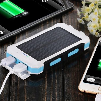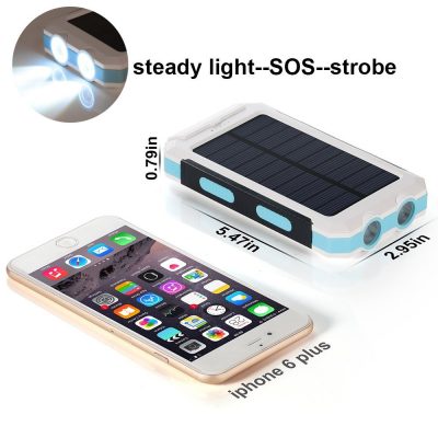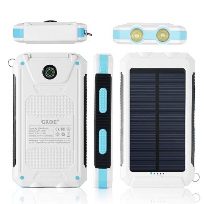 10000mAh 超大容量モバイルバッテリー、携帯充電器 太陽光発電 チャージャー ソーラーパネル、二つLEDライトとコンパス(羅針盤)付き ハイキングや地震・災害時にも非常用ライトとしても大活躍!iPhone / iPad / iPod / Xperia / Galaxy / Nexus等対応