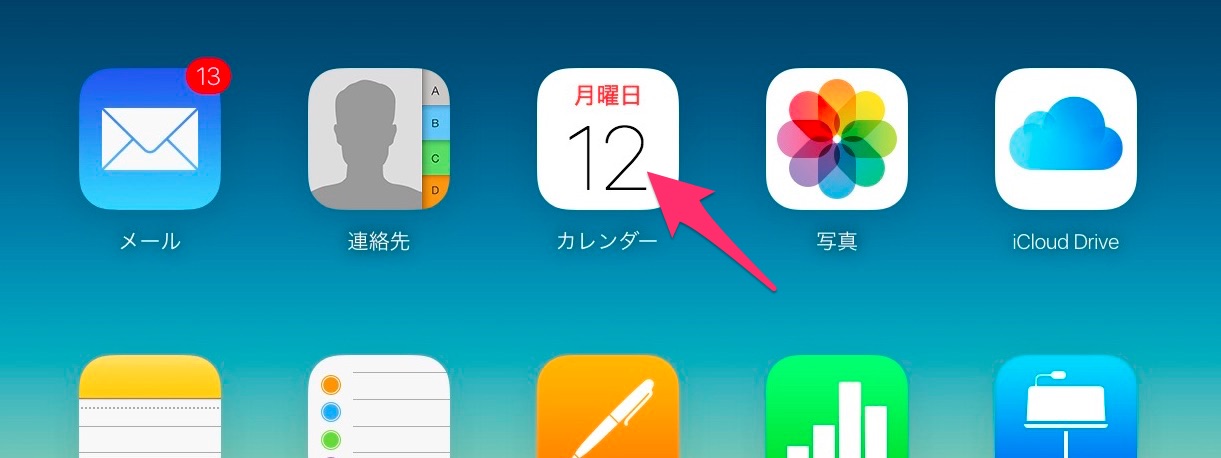 1. まずPCから iCloud.comへサインインして、カレンダーをクリック