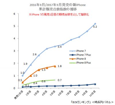 - iPhone 8の販売台数、最初の5日間ではiPhone 7の7割程度に。 >> iPhone+iPad FAN (^_^)v
