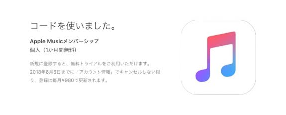 プレゼントされるのは、Apple Musicの個人メンバーシップ(月額980円)を 1カ月無料で利用できるギフトコードで、新規で登録される方は、3カ月の無料試用期間を1カ月延長でき、既存の有料メンバーも1カ月無料が適用されます。