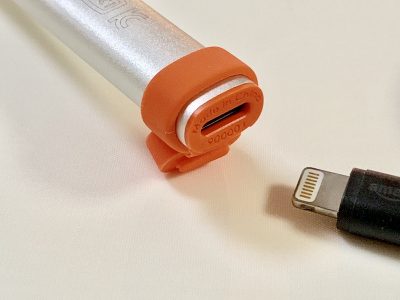 Apple Pencilではマグネット式のキャップですが、Crayonではシリコンラバー製のキャップで、Lightning端子を挿して充電する仕様となっています。