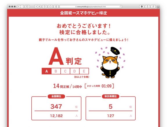 「全国統一スマホデビュー検定」は、ワイモバイルの特設ページ(保護者用/子供用)から2019年5月31日まで誰でも無料で受験できます。