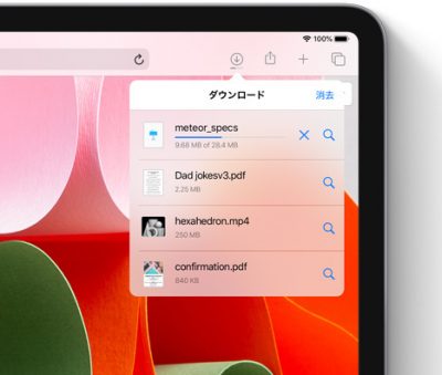 ダウンロード中のアイテムや最近ダウンロードしたものがSafariに表示されるので、ファイルアプリの新しいダウンロードフォルダで簡単にアクセスできます。