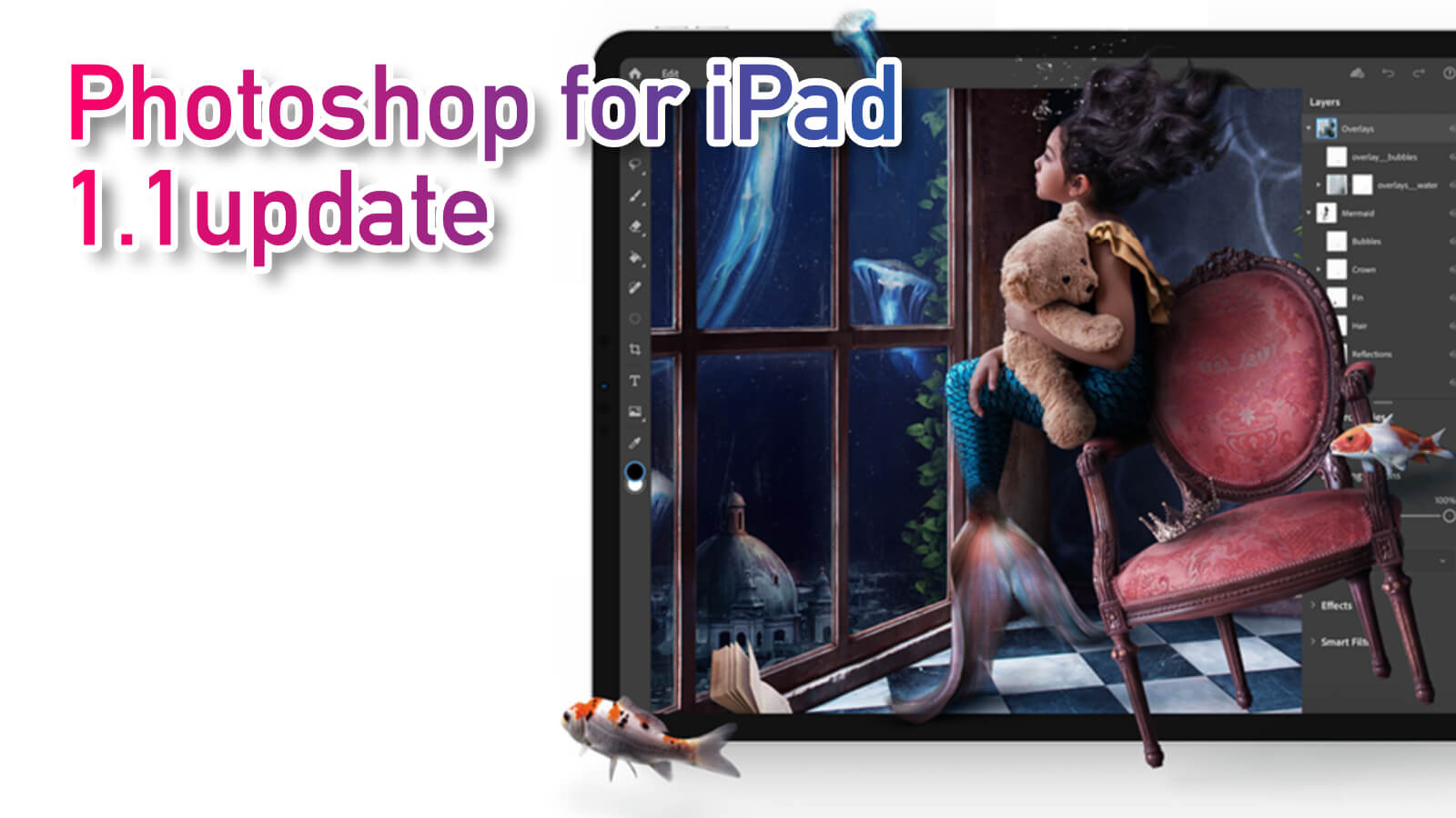AdobeからiPad版Photoshop向けのバージョン1.1アップデートがリリースされています。今回は予告されていた「被写体の選択」が追加。デスクトップ版と同等の機能がいちはやくiPad上で使用できます。いつでもどこでもAdobe Se