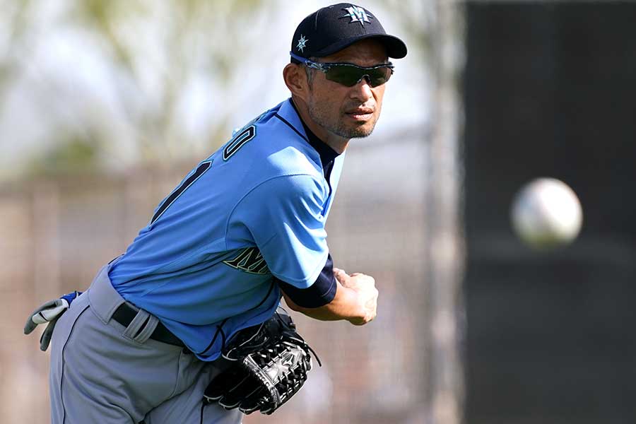 マリナーズの会長付き特別補佐兼インストラクターのイチロー氏は21日(日本時間22日)、アリゾナ州ピオリアで行われているスプリングトレーニングで走塁、外野守備を重点に置いた試合形式の練習に投手として登板した。若手たちに刺激を与えたレジェンドの