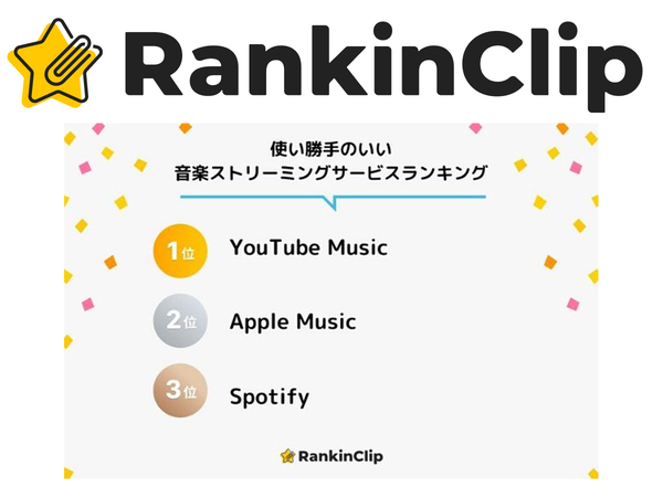 RankinClip、「使い勝手のいい音楽ストリーミングサービスランキング」を発表