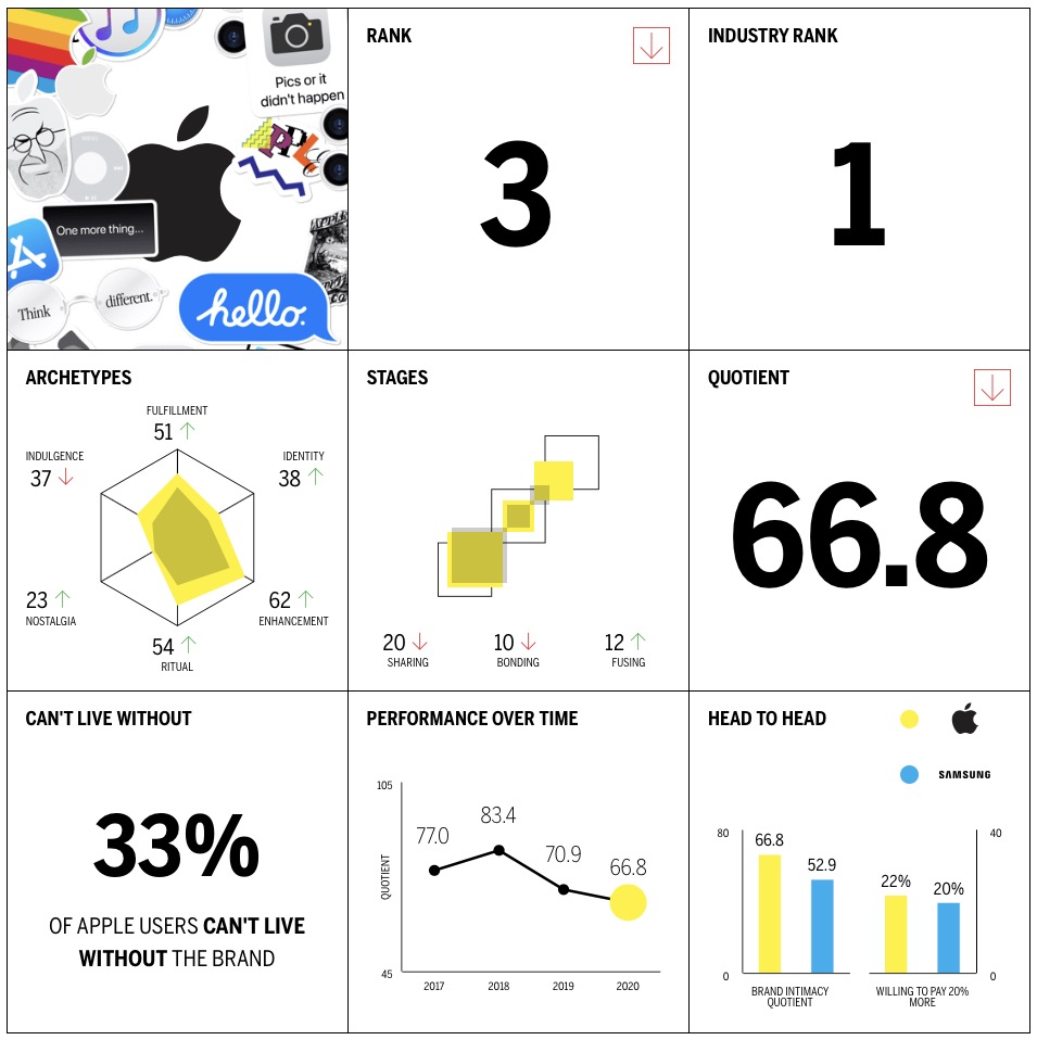 「2020 U.S. Top Brand Intimacy Rankings」が発表されてて、アップルが3位にランキングされていたのでご紹介ww