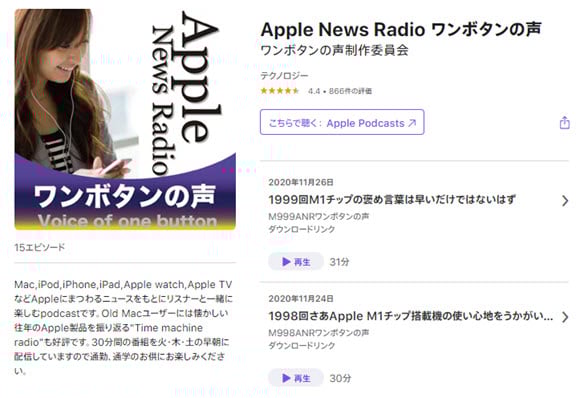 もう10年以上お世話になっている人気長寿Podcast番組「Apple News Radio ワンボタンの声」が、本日2020年11月28日(土)配信分で放送2000回を迎えました(p゚∀゚q)キュキューン