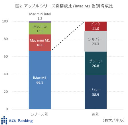 発売早々のM1チップ搭載のiMacだけで66.5%も行っちゃってます!!
