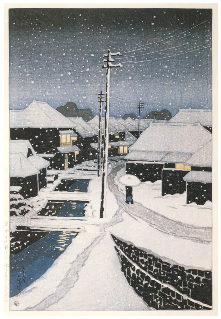 東京十二題 雪に暮るゝ寺島村 (1920・大正9年)Twelve Scenes of Tokyo / Evening Snow at Terajima Village