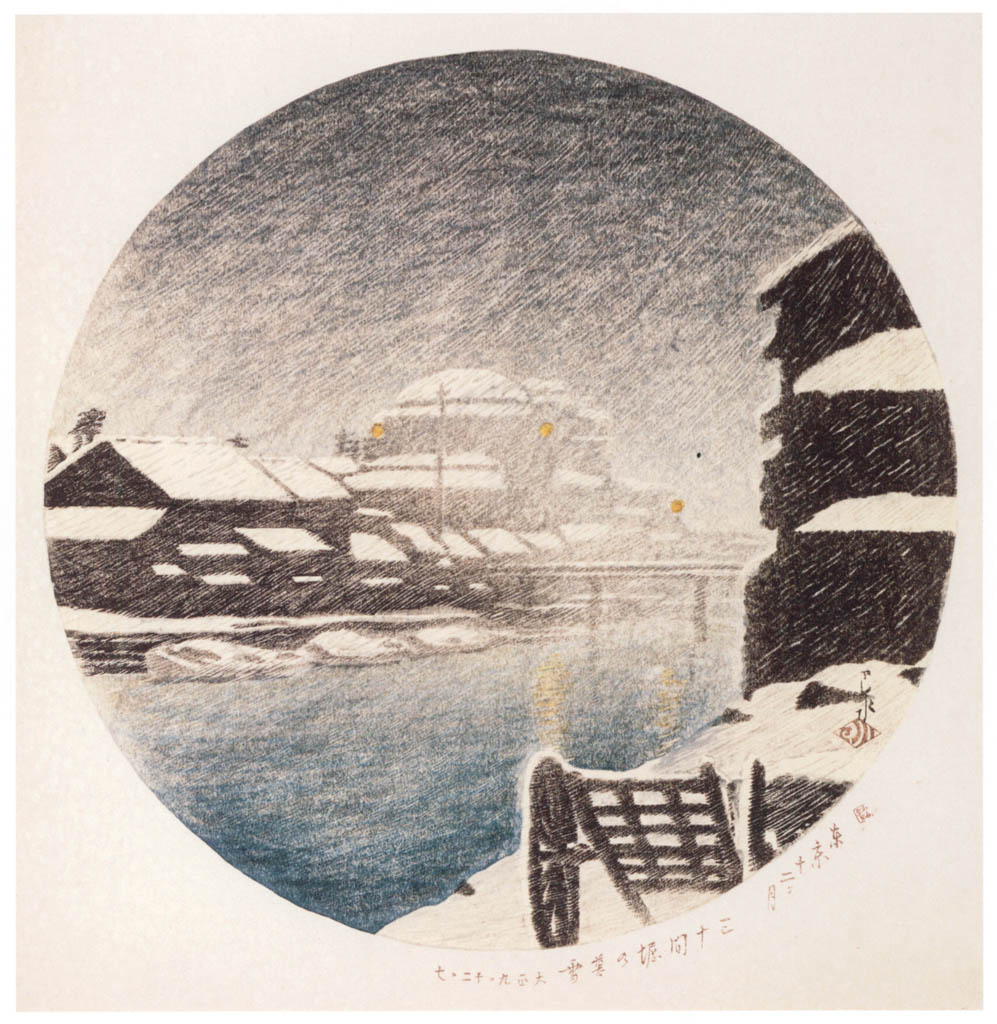 - 東京十二題 三十間堀の暮雪 (1920・大正9年)Twelve Scenes of Tokyo / Evening Snow at Sanjikken Canal