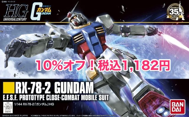 アニメ・マンガ Amazonで「HGUC 1/144 RX-78-2 ガンダム」が10%オフ!税込1,182円の特価セール開催中